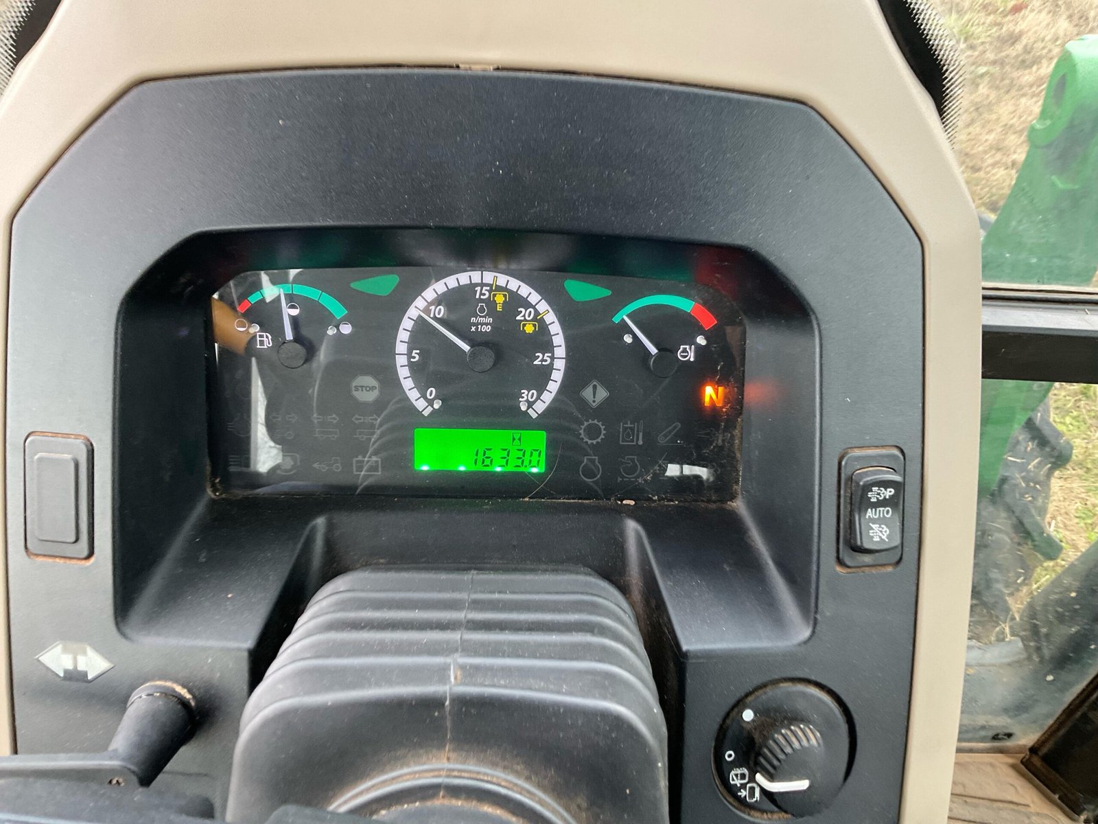 This 2022 John Deere 5065E is a high-performance 67 hp utility tractor showing 1,633 hours. It features a 12-speed PowrReverser transmission with a left-hand reverser for smooth, clutchless directional changes, all within a climate-controlled enclosed cab equipped with heat, AC, and radio. The machine is work-ready with a loader prep package, joystick control, and a 3-point Quick Hitch. Complete with eight front suitcase weights, a grill guard, and dual hydraulic remotes, this MFWD tractor offers exceptional stability and versatility for any operation.